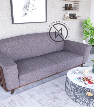 Woodman Modern 3-Seater Sofa with Wooden Slat Armrest Detailing – Light Grey Upholstery